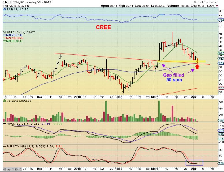 CREE – The gap filled and it also landed on a break out back test. This is a low risk buy, easy to sell if it goes against you.