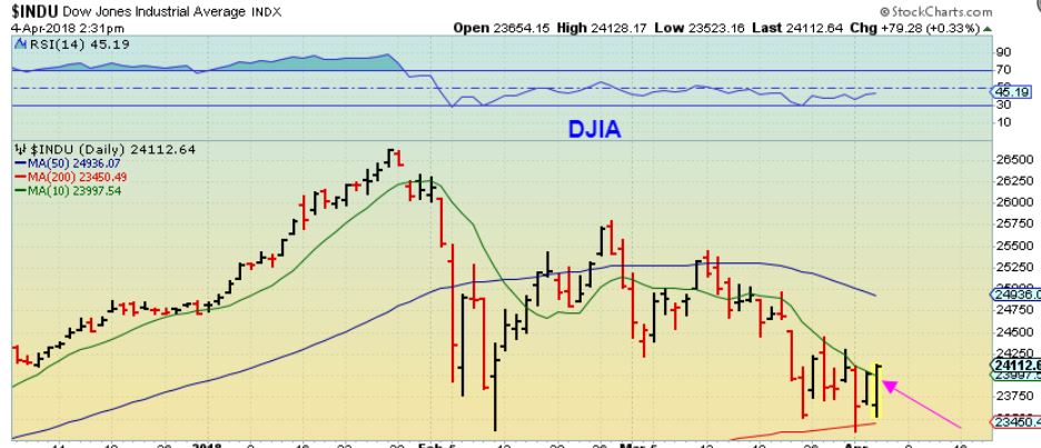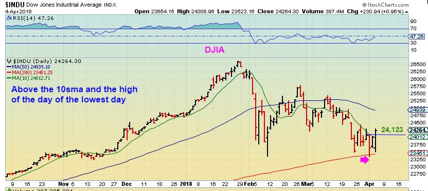 DJIA – By the end of the day, it did not sell off into the close, in fact it moved higher. 24,264. This looks like the DCL an yesterday was Day 2 off from the lows.