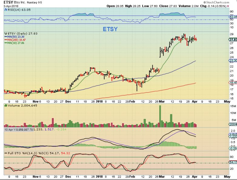 ETSY from yesterday – I actually pointed ETSY out already, and it has been very strong. T is currently consolidating recent gains, but a break higher would be a buy.