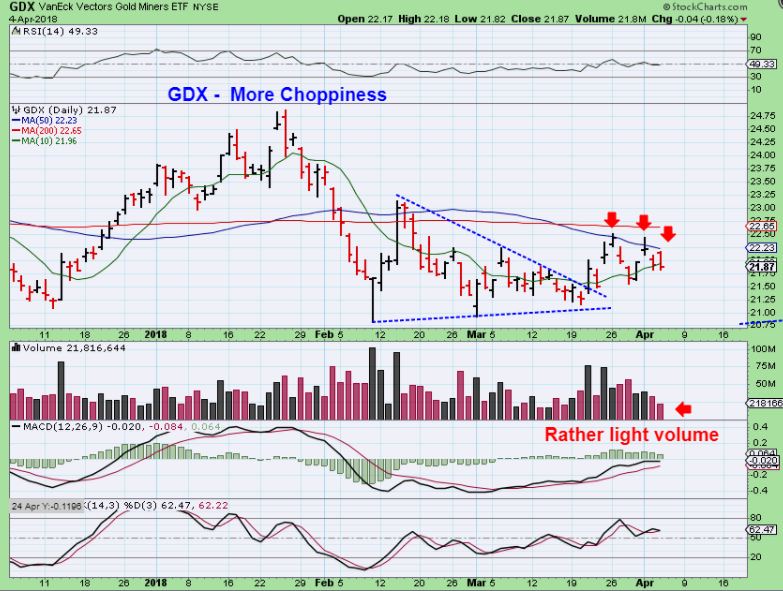 GDX – They then sold off after tagging resistance again. This is day 10, and day 4 was the peak ( L.T.) . This can POP & CHOP around, but I don’t think that GDX will get above the 200sma in this daily cycle. If it did, I would examine that extensively. For now, more sideways chop.