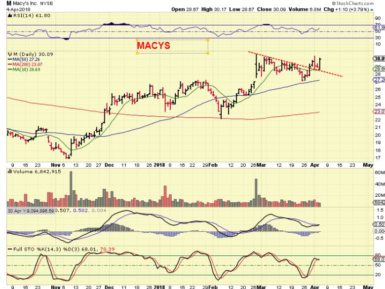 M- MACYS? MACYS?? The FEB market sell off tagged the 200sma, the last sell off tagged the 50sma. IT IS AT THE HIGHS ALREADY. This is acting correctly in a market that has many panicked. It is NOT an easy ride, look at Dec through Feb, but it has just about doubled in 5 months.