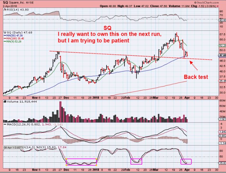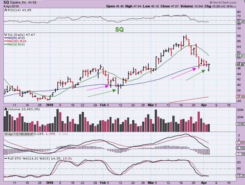 SQ – I have been pointing this one out for a while now, and this may be the ‘shake out’ that I was hoping for. It needs follow through for a recovery, but I bought it yesterday. That was a tad risky below the 50sma, but it is right at the 50sma now, so it would be a buy, especially if it gets follow through higher.