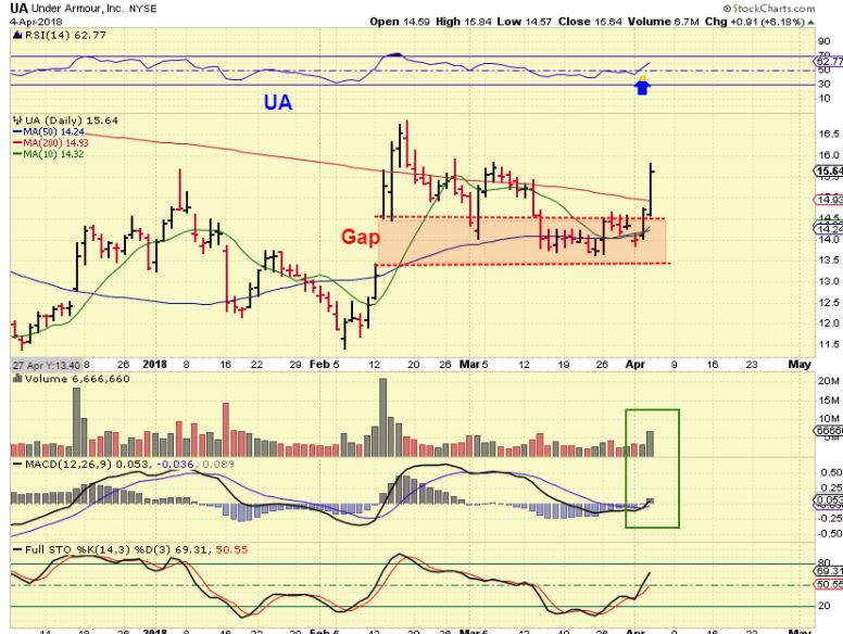 UA– This is actually a buy, and this 2 day burst was DURING the market sell off. It filled a gap during the sell off, that is normal. $19 ish price target. And…