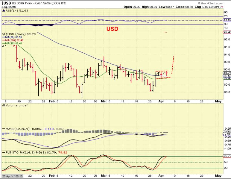 USD – possible Bull flag, I have mentioned that I expect the USD to go higher. Nothing has changed, this is only day 5. The USD dropped & GOLD popped, but that changed as the day went on ( as expected).