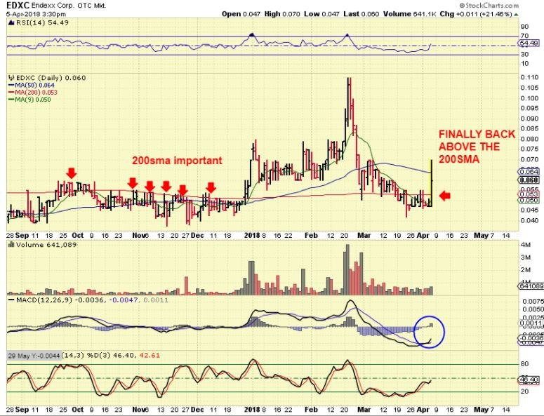 GALT– When it dropped I figured that maybe it was going to tag that 200sma, but it gained 15% yesterday, so it’ll either be choppy or its ready to take off higher. I like the set up and it looks like it wants to go higher (I own it), but it still COULD drop to the 200sma..