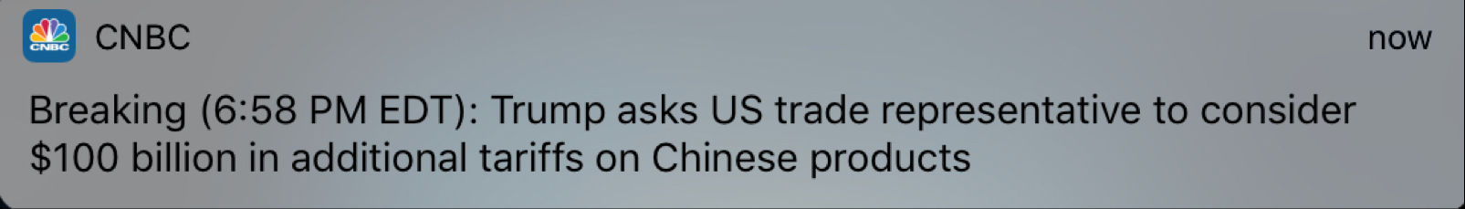“President Trump has instructed the U.S. trade representative to look at $100B more in tariffs against China, sending equity futures down.” Hopefully just another overreaction like we saw Tuesday night and Wednesday morning. https://uploads.disquscdn.com/images/1b96c9213549528cfbfd30332ca1756952397d415b5710b5697ffb8022f26532.gif