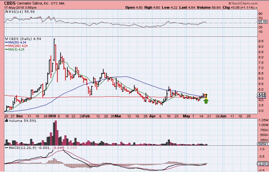 CBDS – I bought this MJ stock as it crawled along the 50sma, expecting a break out. It did…