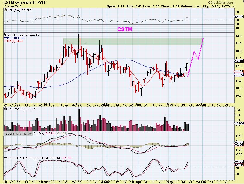 CSTM – MAY 16 saw volume swell in CSTM, so I expected it to break & run. The RSI was strong.