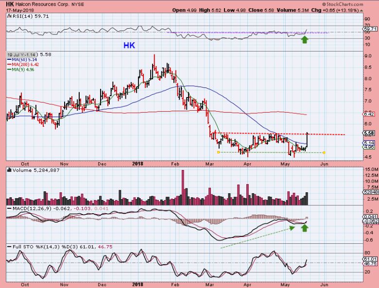 HK – This energy stock did not follow Oil higher, it has been building a base. The MACD has been climbing in a bullish manner too. Volume started building and suddenly it Popped Thursday above the 50sma. It may run to the 200sma and pause or it may surge through, but I would expect it to make a run for the highs again over time. It is above the 50sma ( a buy), but is still inside the base. I would still consider this a buy.