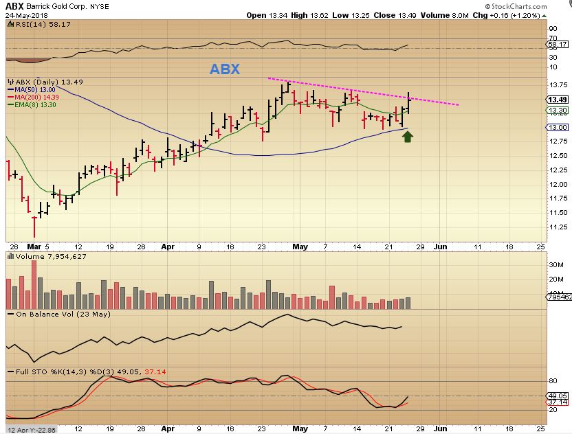 ABX – If this was a tech stock, would I recommend this? Why not? This looks very good. It reversed on the 50sma and is moving out of oversold. So this could break out & that bodes well for GDX.