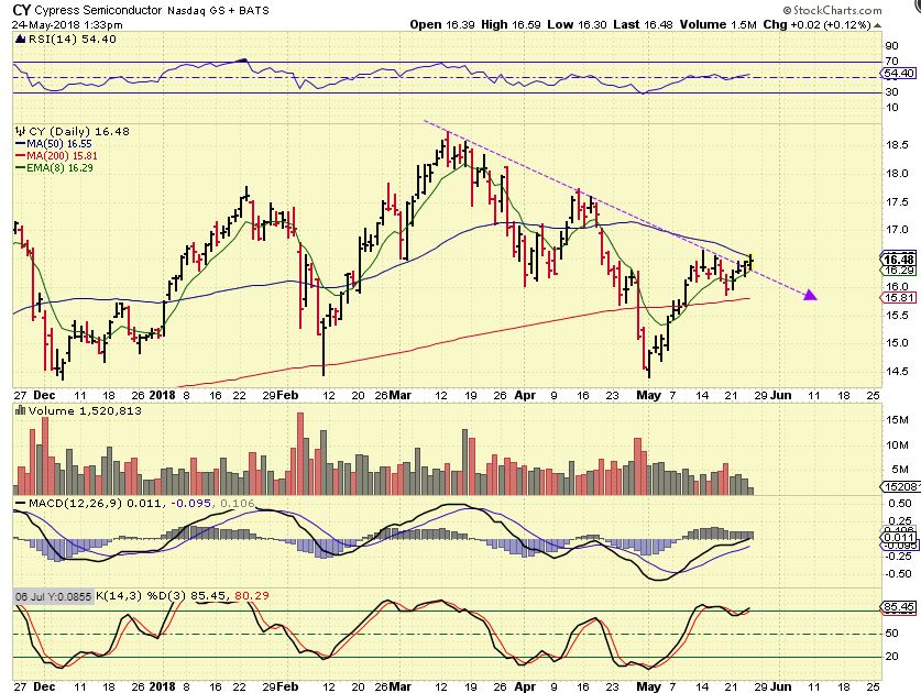 AUY – This one triggered buy in March, but when it lost the 200sma, it also lost the zero line ( A sell trigger for safety sake). So this is a lagger and may be setting up to move higher soon.