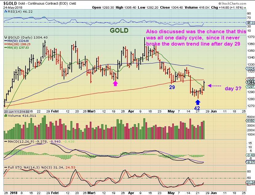 GOLD #2 – We also discussed a possible LONG daily cycle bottoming on day 42. I viewed this as less likely, but if GOLD breaks out here, this would look like an ICL drop & a shake out when it plunged below the 200sma.