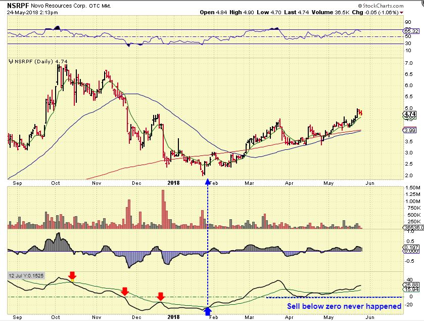 NSRPF – This became a buy when it bottomed in January, and never triggered a sell in the lower indicator since then. It was Not an easy ride, but a 100+% Move higher has taken place.