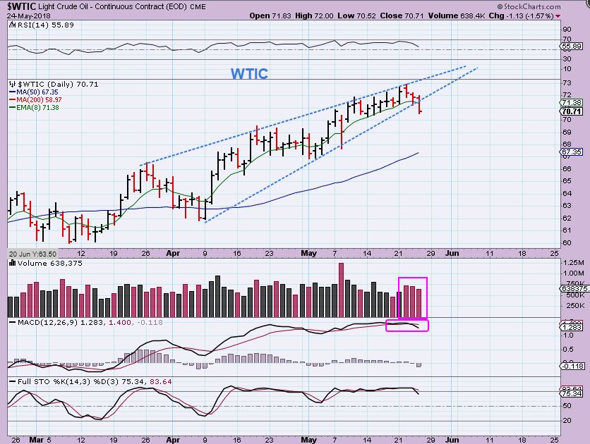WTIC – It looks like the drop has started and it could drop to the 50sma as a possible target. This drop may take the form of an a-b-c style dip.