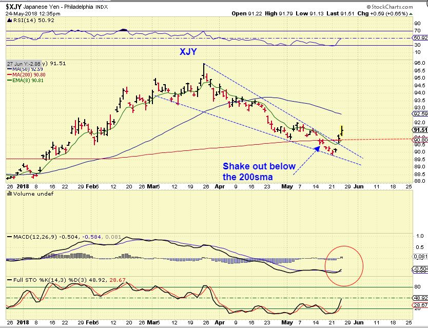 XJY – The YEN broke below the 200sma and recovered. The way that the YEN moves often leads Gold, so this bodes rather well for Gold. It looks like $XJY did a shake out.