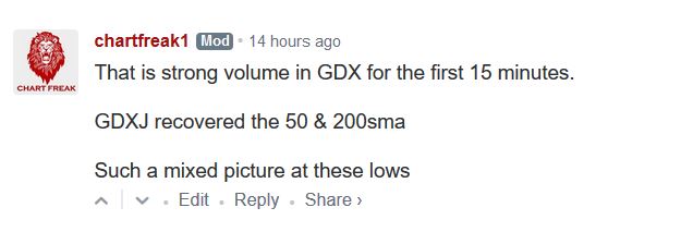 So I think that Gold regaining the 200sma would have to be viewed as a buy, and then you would place a stop below it for protection. As we have discussed over and over, some MINERS are just ignoring any Gold selling, and some are well off of their lows. Certain Miners should already be viewed as Bullish and are not affected by Golds movement to a large degree.