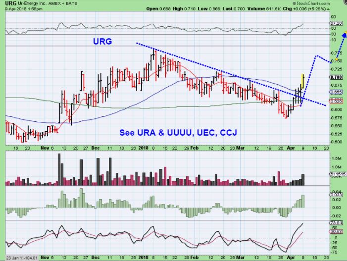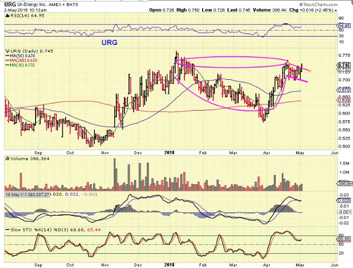 URG – In my April report, URG was targeting the former highs to complete a cup, up near 75 cents