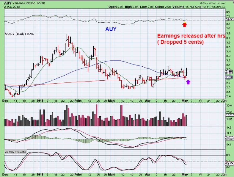 AUY – After the close, AUY was under $3. 🙂 , but it was down slightly after earnings.