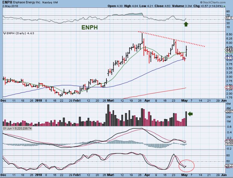 ENPH from my SEPT 2017 report -This was one of my favorite stocks last year, and I rode it from this base from under $1. I expect it to run to former highs over $16 actually, their business has been doing very well.