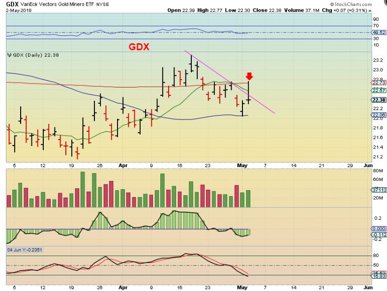 I also pulled up GDXJ and simply drew a trend line along the lows of the last 3 days