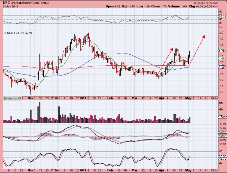 UEC- I think that this could be bought and held now. It has not been an ‘Easy’ Ride, but the sector is bullish.