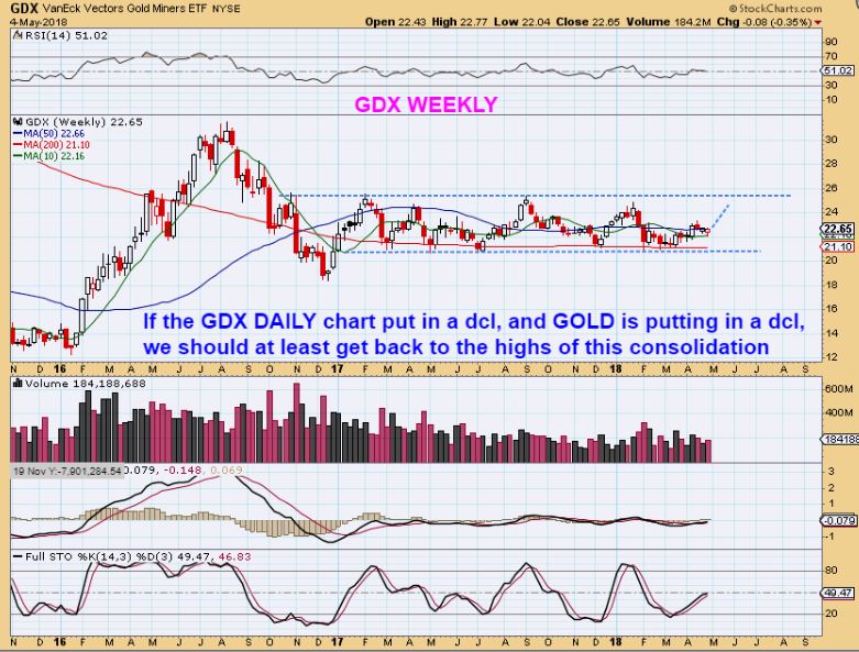 GDX WEEKLY – Remember last weekend we were stuck in the middle, with a FED MTG ahead that could launch us higher or lower? Well that is where we still find ourselves, but it sure seems more likely to go higher now, right?