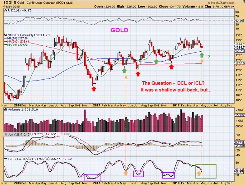 GOLD WEEKLY – I used Green arrows for some DCLs , RED for ICLs. Is this a DCL or an ICL is the question? As mentioned above, next week could shake down a deeper drop to an ICL. a big 3 day drop would scare many out. At the end of this report, I will have a bonus section, but dont skip there now
