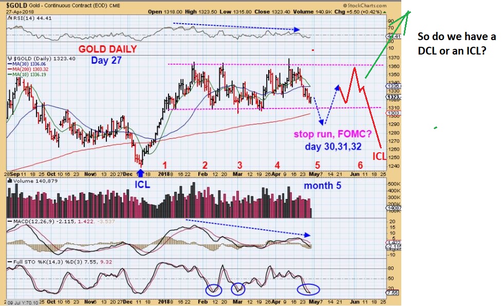 1. GOLD REMINDER from the MARCH 16th report– For Months now I have pointed to the MAY FOMC as a possible target of a 5th month ICL . I have posted this chart maybe 10 times. ICLs come 5 or 6 , maybe 7 months apart, and we had one in Dec 2017. We could get one in MAY, JUNE, or even JULY.