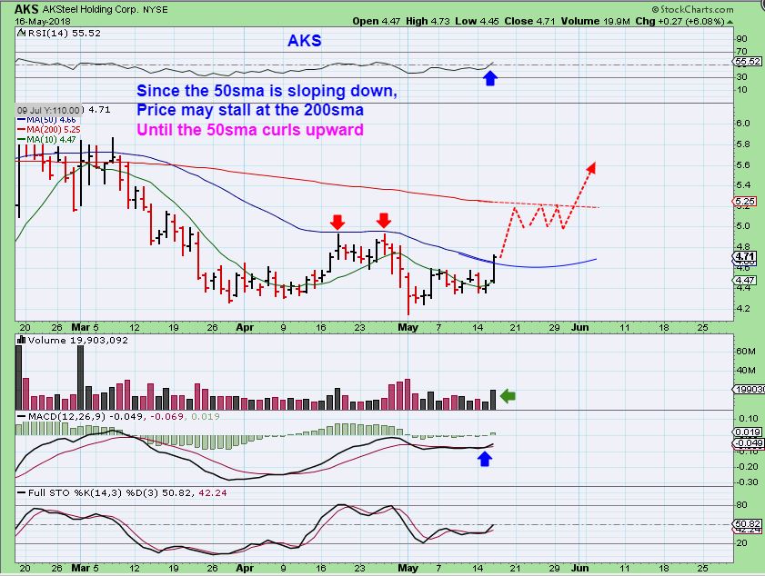 I just realized that I only posted 1 chart for AKS in the report, but I had 2, and the other one showed that AKS broke a downtrend line and the 50sma.