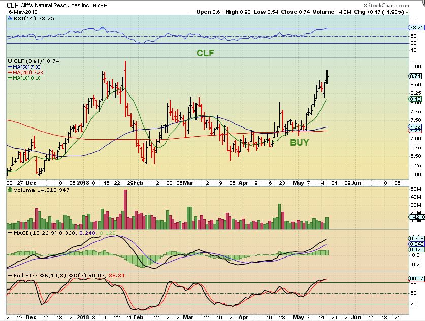 CLF MAY 10 – Last week I posted that CLF is getting follow through and other ‘Metals’ stocks are starting to look good too, like X, AKS, etc.