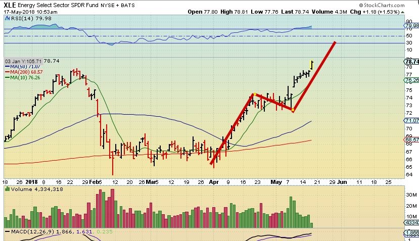 CLF– CLF continued higher to the former highs of $9. It could form a handle when it gets there, or it may just break out.