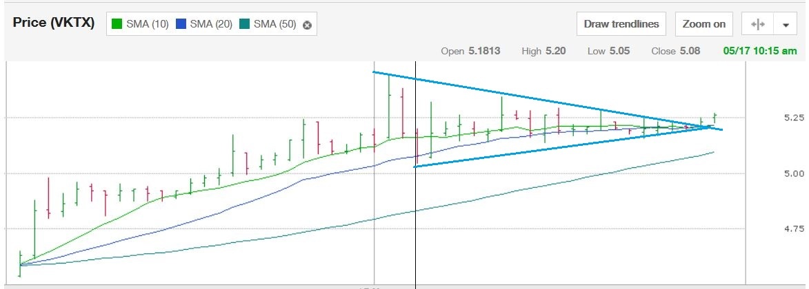 I own VKTX from 4.90 half size. Im diggin this chart alot. I am waiting on entry for the other.