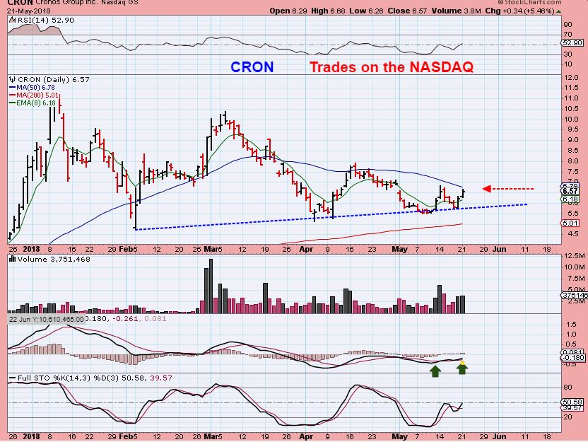 CRON – For those that do not like OTCBB stocks or cannot buy them with their current brokerage, CRON is already listed on the NASDAQ ( and TWMJF is being listed on the NYSE soon as CGC). CRON moves quickly when it gets going.