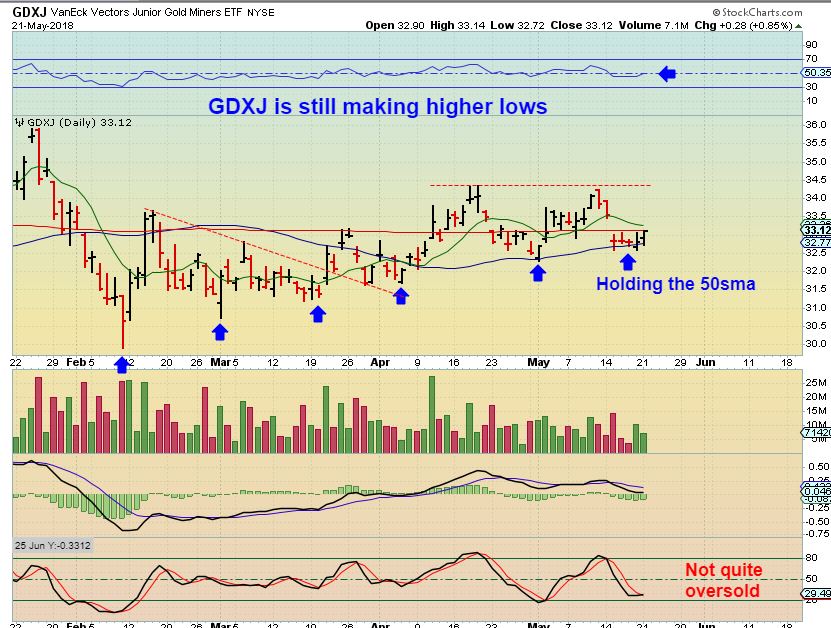 GDXJ – And GDXJ has made higher lows since February and did NOT break the May 1st lows either.