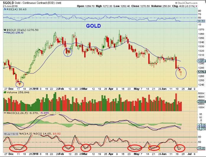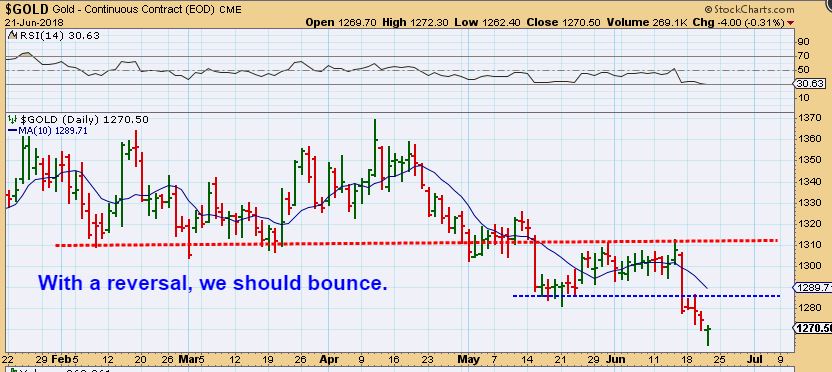 GOLD #1 – Usually a reversal candle leads to at least a bounce and often a low, so I drew a resistance line …