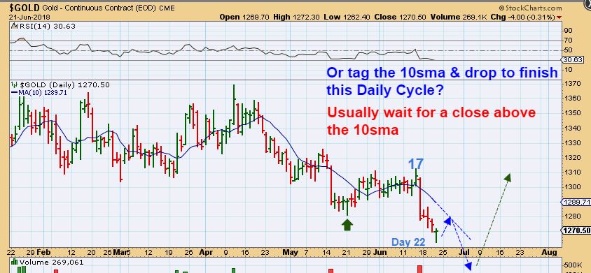 GOLD #3–  A tag of the 10sma and dropping further IS also possible from day 22. This would simply extend the daily cycle count, and Daily cycles can be 30+ days.