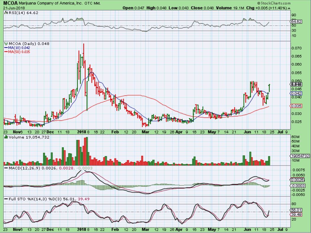 MCOA –  Low priced, I do not own it, but it is up 100% since April too, and volume is growing s it pushes higher.