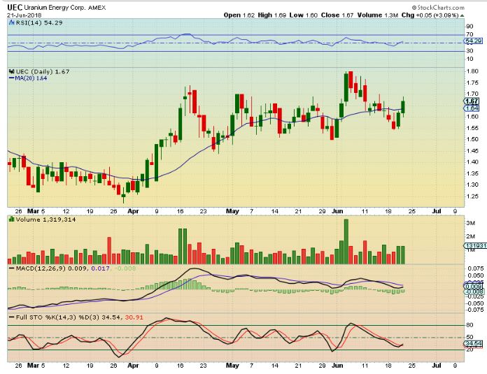 UEC – Uranium stocks like UUU and UEC still look fine,  but URA  ( the ETF) dropped below support of the 10sma and has been selling down.   UEC & UUUU look ready to move higher.