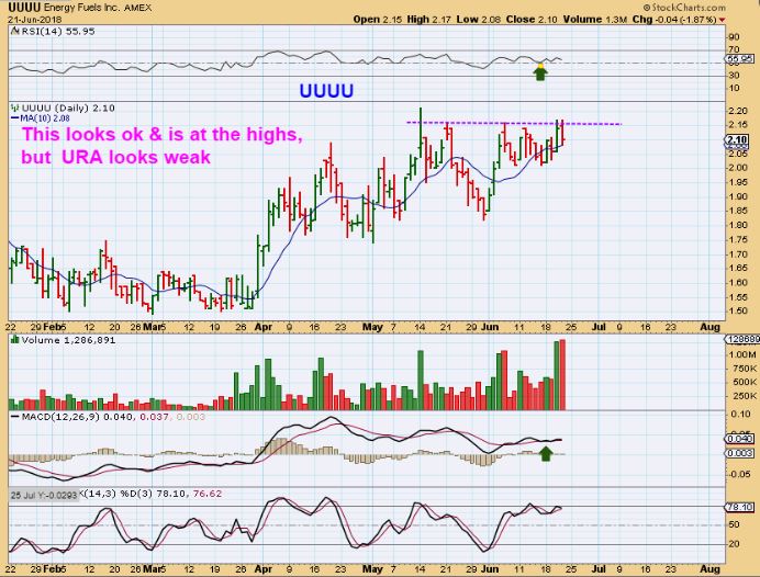 IF YOU OWN IT FROM THE LAST URANIUM DISCUSSION, you can hold with a stop, but URA looks weak and I sold my UUUU.  It is actually at the highs, but I didn’t want to take a chance.