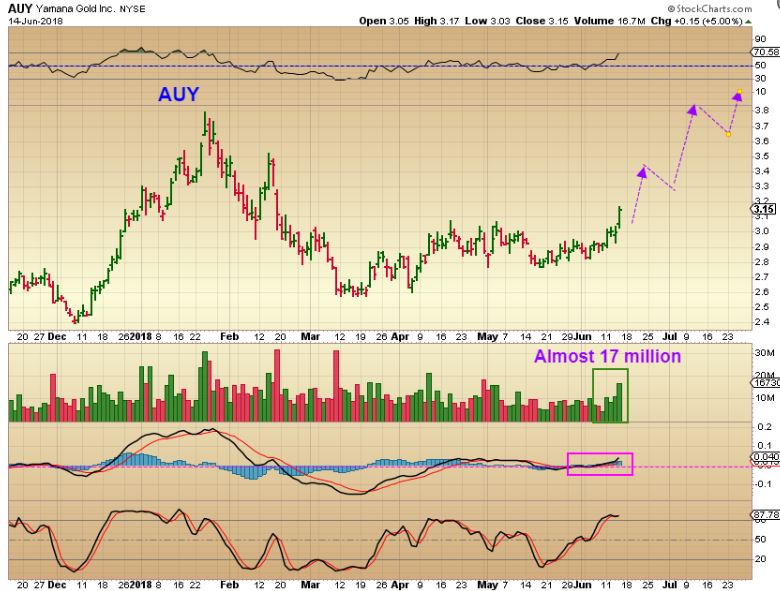 AUY – by the close it had almost 17 million in volume and closed near the days highs. I expect it to eventually reach the January highs again, and even more if 2018 turns out as I believe it will.