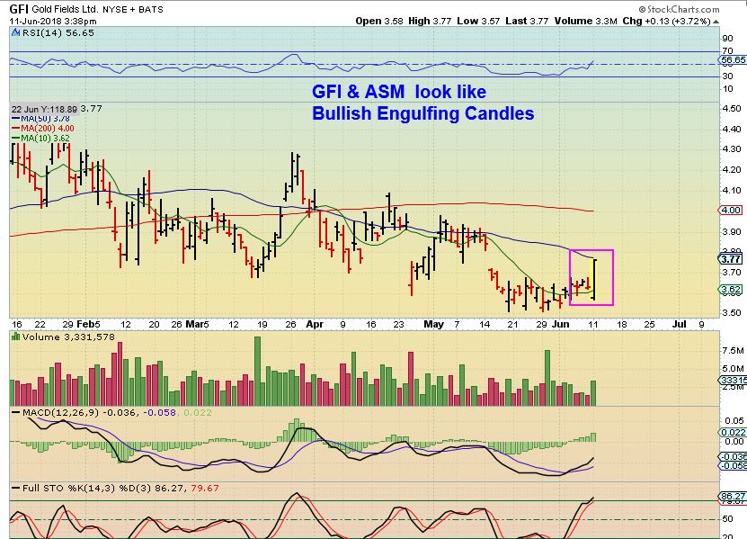 GFI – From June 11th, I discussed this POP before the FOMC Mtg also. I was mentioning that many Miners are lining up bullishly then.