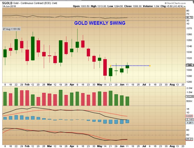 So what I am trying to point out here is this: I have been looking for clues that would help us to see if an ICL took place or was still ahead of us. Things were not very obvious, because we have had weeks of just seeing sideways lackluster action in Gold & the Miners. This is a very bullish looking chart, but it is not clear that this would not break down, with Gold just going sideways…