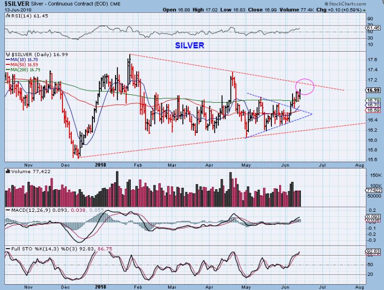 SILVER after the ECB MTG & WITH THE USD STRENGTH – Do you remember when I was looking for an ICL in May ( 5th month after decembers ICL)? Silver looks like it DID lead the way and put in a Stealth ICL / ‘shake out ‘ as it climbed this triangle. Silver above $17 is very bullish.