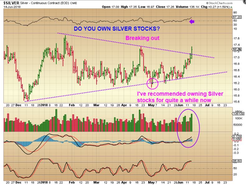 After the FOMC & ECB Meetings, I am now seeing some ‘changes’ taking place on the Bullish side. Silver broke out yesterday! Gold may or may not take off higher today, but Gold popped after the ECB Mtg, and the daily cycle now has a peak on day 17 so far. With that, I am seeing clues or strong indications that the ICL is behind us. The USD remains tricky, but we’ll see how that plays out. GDX & GDXJ are deceptively boring, while individual Miners certainly have bullish set ups and are getting bullish follow through.