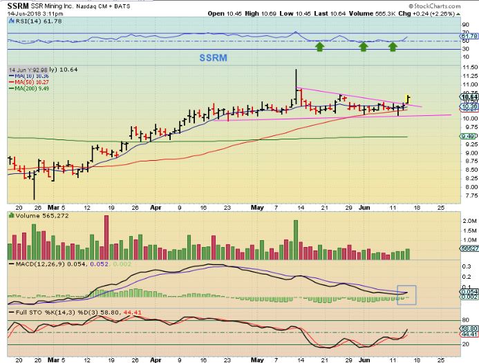 SSRM – This is just starting to break higher as of yesterday. After a multi-week tight base like this, SSRM could run very nicely. This is an easy buy too, with a stop under recent lows. Those lows have been holding for months and this is a bullish chart.
