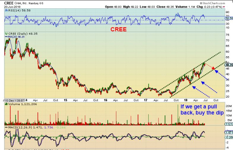 CREE  –  CREE has been running strongly, but it does look like it needs a pullback. Buy the dip if it does.