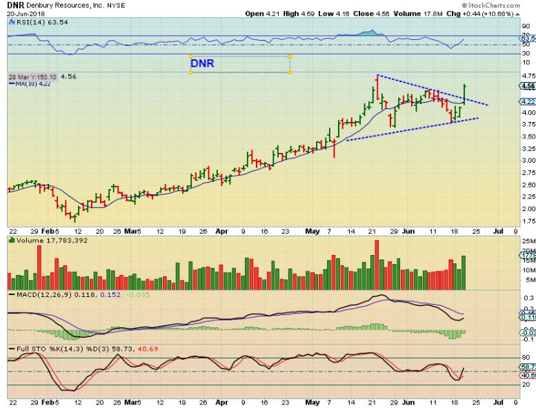 DNR –  Break out, this was a buy & still is a Buy, especially if it pulls back today.