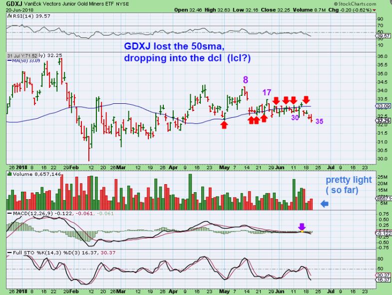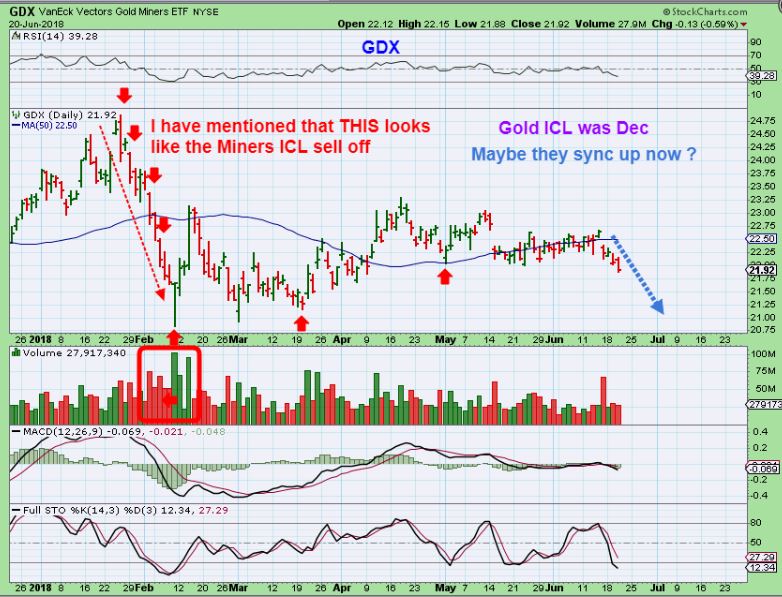 GDX – We are dropping into our DCL/ ICL. This shows the final daily cycle already on day 35, which would be further along than Gold,  but…