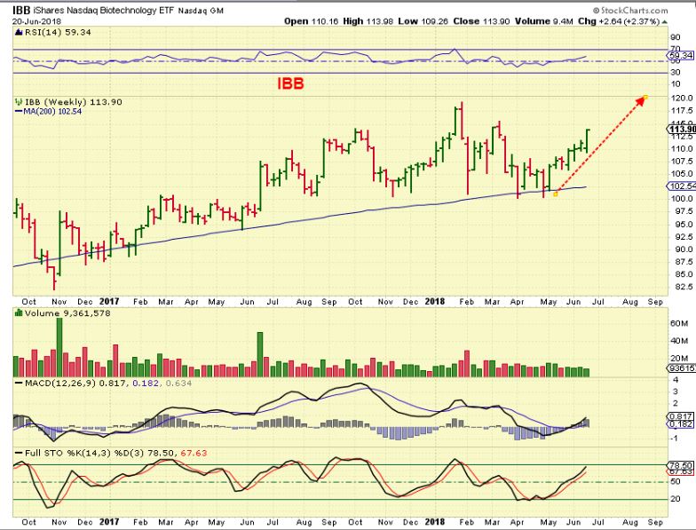 IBB  WEEKLY  – And BIOTECH continues to look Bullish  ( This is a weekly chart).