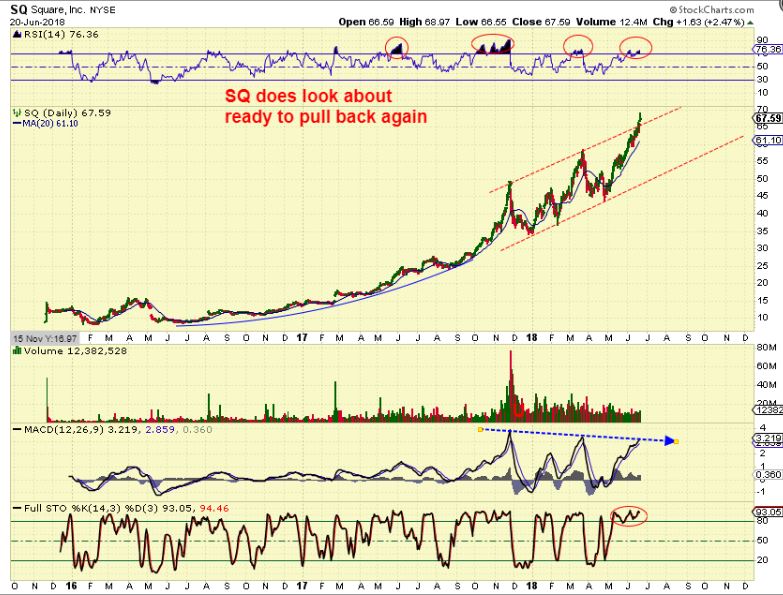 SQ  – This also has been very strong, but it could pull back, so maybe the NASDAQ Wedge will drop down?